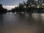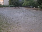 halbe Ort bis zu einem Meter unter Wasser.Die sofort alarmierte Feuerwehr musste warten bis das Wasser zurückging, bevor mit den Aufräumarbeiten begonnen werden konnte.